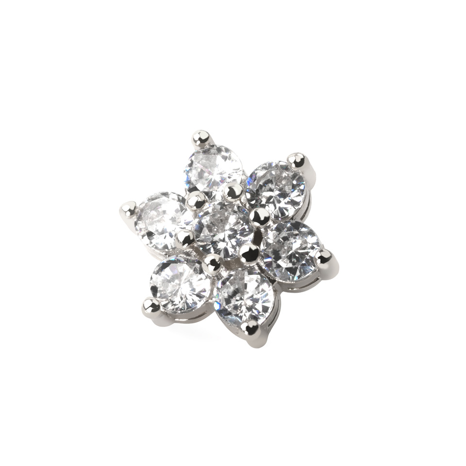 Először is, te választhatod ki, hogy milyen színű legyen a piercing alap szerkezete. Lehet például klasszikus sárga arany vagy rozé arany színű is az ezüstösön kívül. Ezen felül még azt is te szabhatod meg, hogy a csodás virág forma közepén található kő milyen színű legyen - de csak egyes daraboknál.